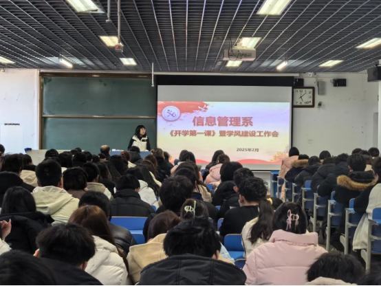 2025年2月25日下午,信息管理系于明德楼305举行2025年春季学期“开学第一课”暨学风建设工作大会。信息管理系党总支书记、主任温秀梅,副主任肖丹,教研室主任康丽峰、王海东,实验室主任李飞出席了本次会议,大会由学工办主任史海嫣主持,信息管理系全体在校学生参加。