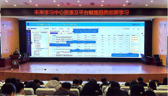 全系师生还听取了中国知网研学平台讲师的《如何充分利用未来学习中心资源及平台赋能自我创新学习》主题报告,受益匪浅。